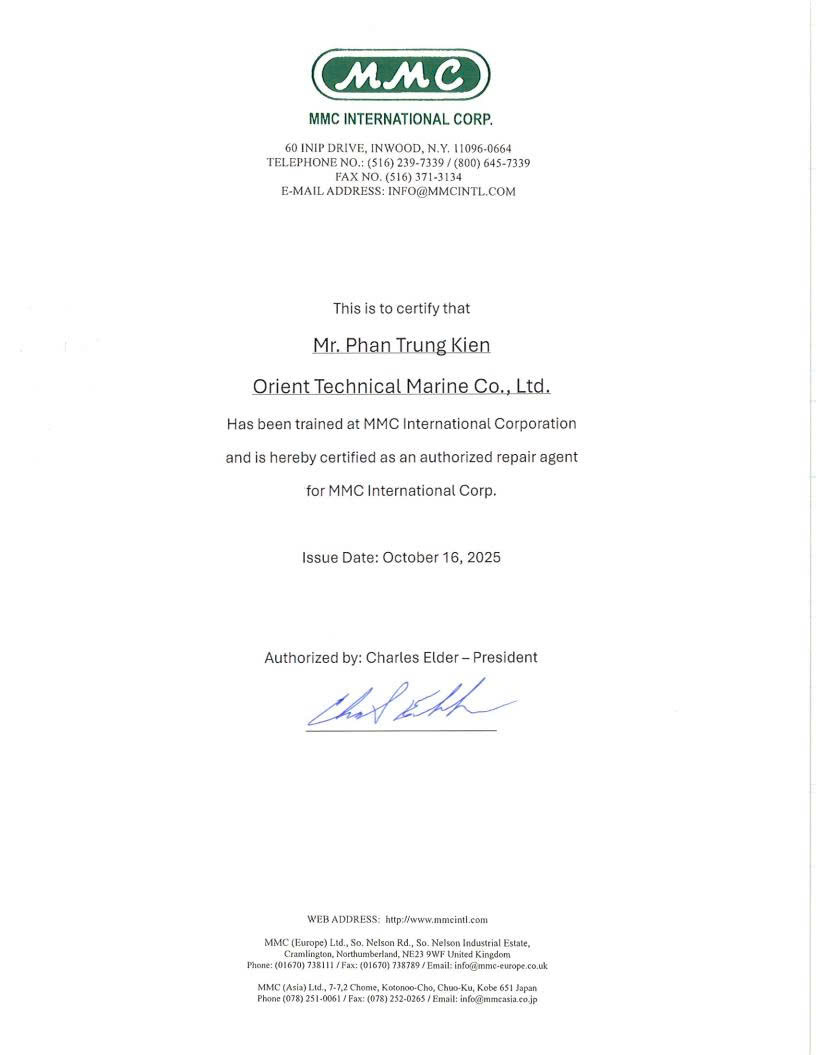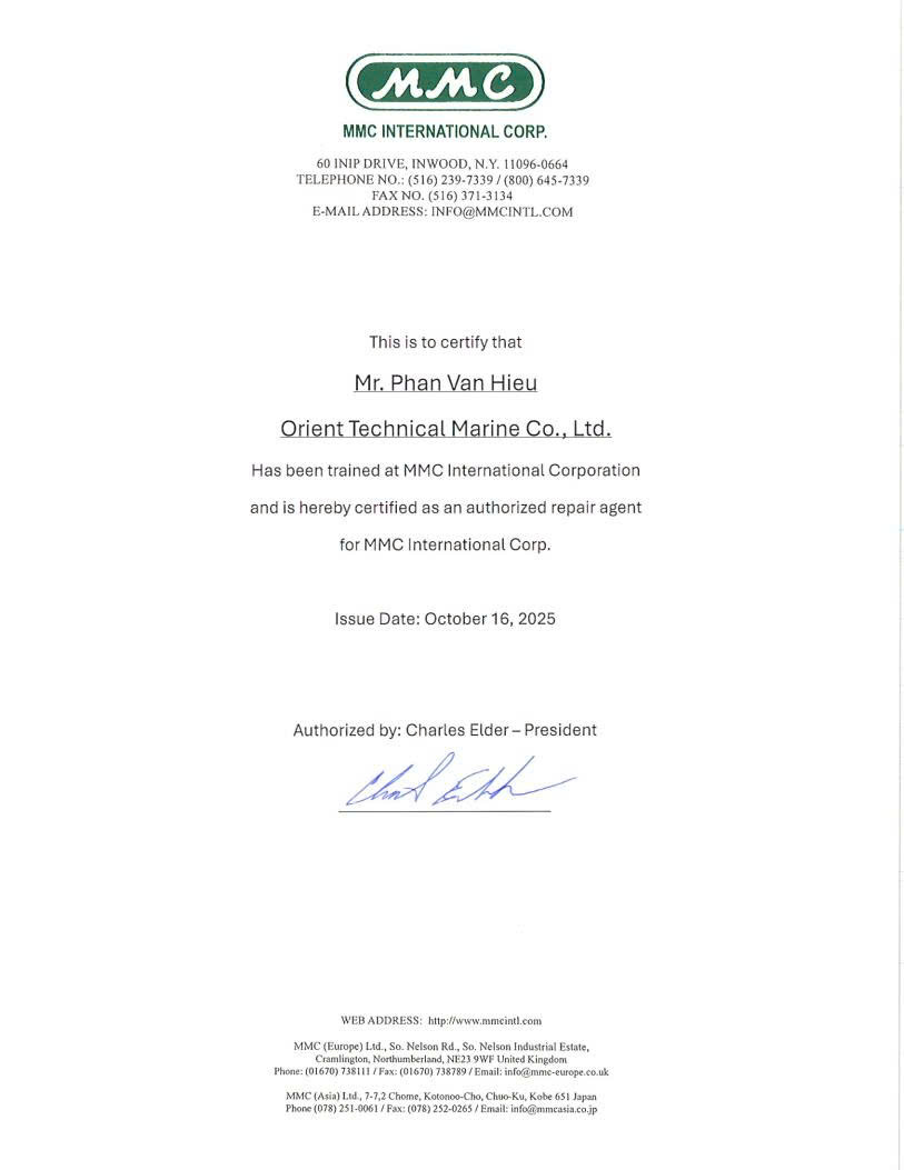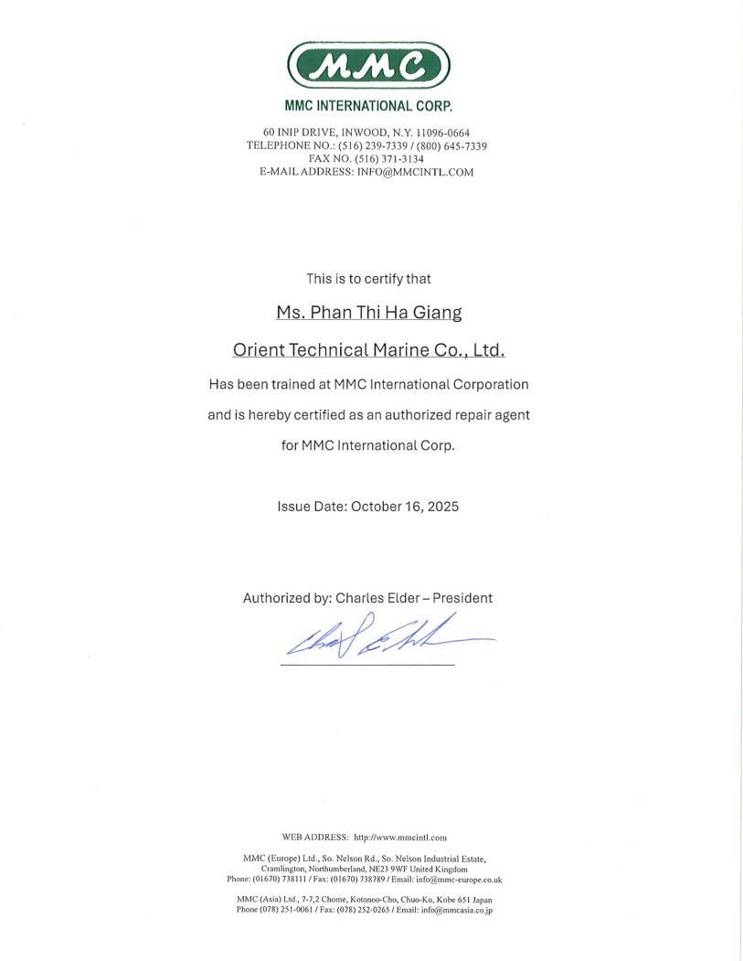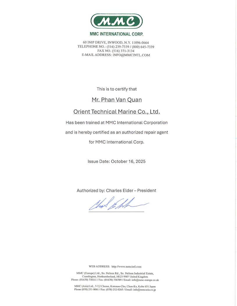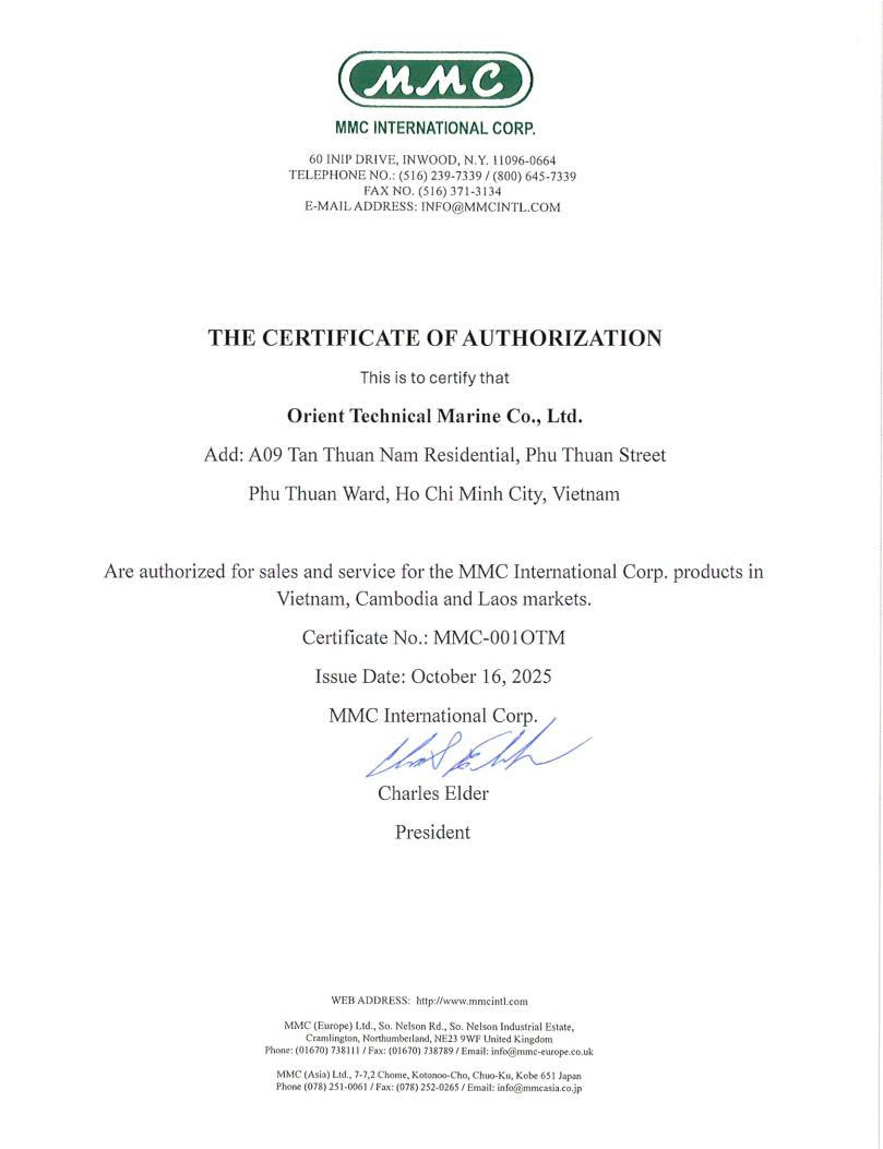 CHỨNG NHẬN ỦY QUYỀN CẬP NHẬT MỚI NĂM 2025 CỦA CÔNG TY PHƯƠNG ĐÔNG CHO DÒNG SẢN PHẨM THƯỚC ĐO DẦU MMC THEO TIÊU CHUẨN CHẤT LƯỢNG CỦA NHÀ SẢN XUẤT MMC (USA).